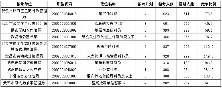 報考人數最多的十個職位如下: