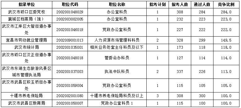 截止25日18時,2016年湖北公務員考試市州、直管市、神農架林區3113個職位共招錄5204人,報考人數達到82742人,通過審核人數58855人,平均競爭比為11.3:1,仍有82個職位無人報考,264個職位無人通過審核。