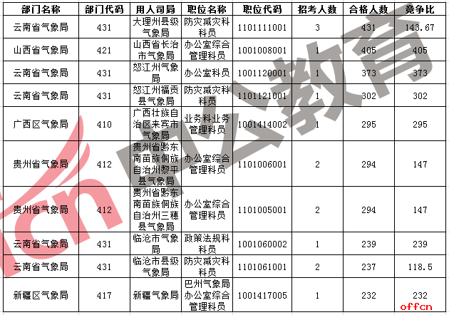 2017國考報名結束:氣象部門過審11820人 平均競爭比24:1