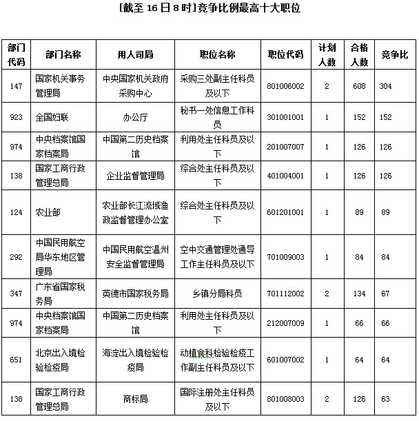 [截至16日8時]2015國考報名第2天31487人過審 最熱職位競爭比304:1