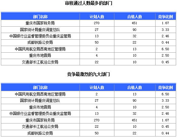 為幫助廣大考生更清晰的了解今日報名情況,中公網校整理了審核通過人數前多的部門以及競爭比例最激烈的部門,供廣大考生參考:
