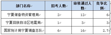 截至16日8時,競爭比例的職位為寧夏儲備物資管理局物資管理處主任科員及以下(職位代碼:601491001),招錄1人,審核合格通過10人。
