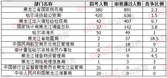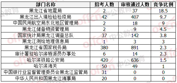 截至17日8時,競爭比例前三位的部門依次是:黑龍江省地震局、黑龍江出入境檢驗檢疫局、中國民用航空局東北地區管理局。