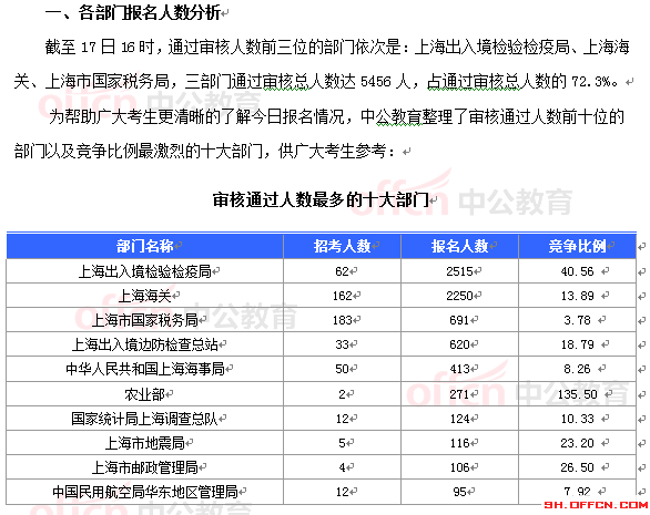 [17日16時]2015國考報名【上海】審核人數達7474人 最熱職位268:1