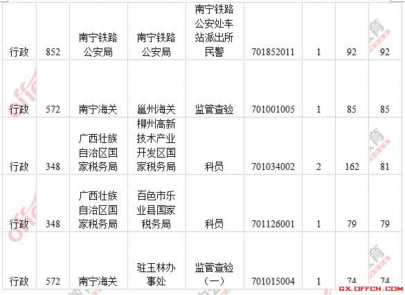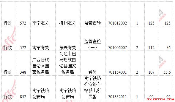 報名通過審核人數前五的職位主要集中在廣西壯族自治區國家稅局、海事局和南寧海關,具體信息如下: