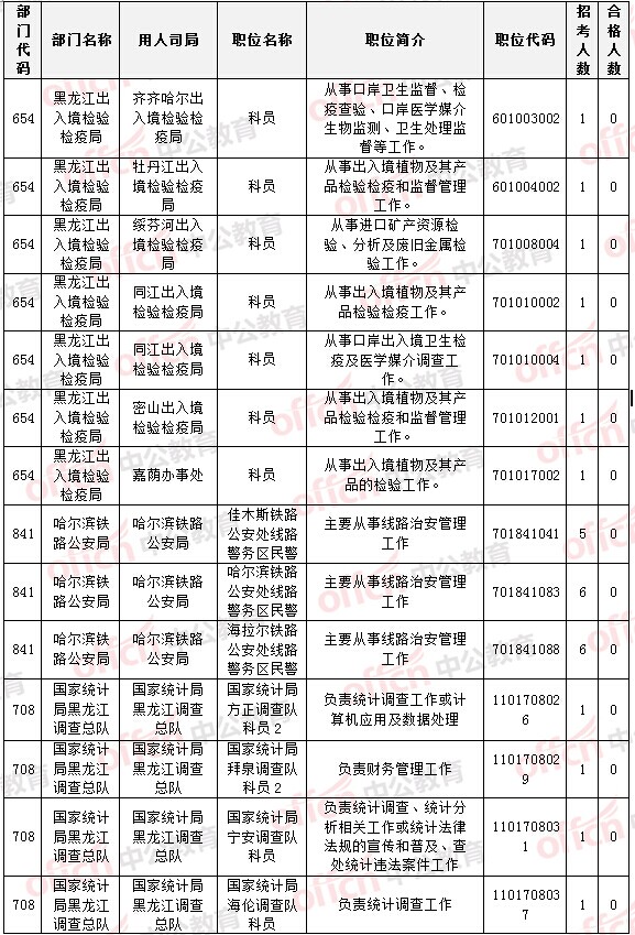 【截至20日8時】2015國考報名【黑龍江】零審核職位匯總