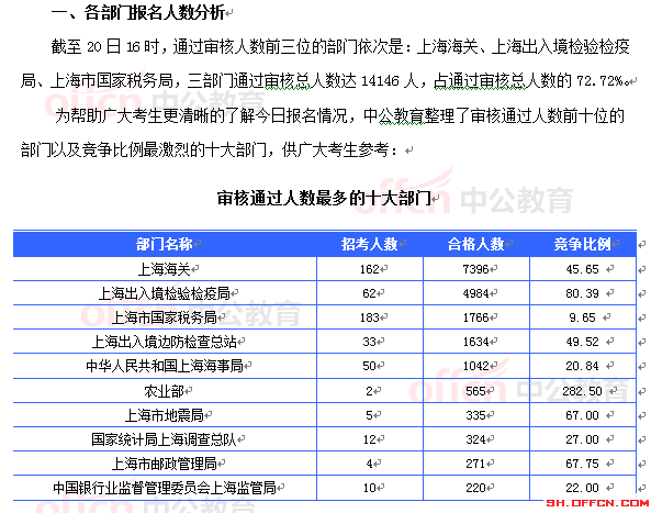 2015國考報(bào)名上海審核通過19453人 最熱職位558:1[截至20日16時(shí)]