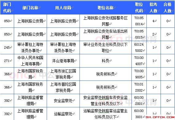截至20日16時,工作崗位在上海地區共有13個職位無人報考,占全部職位的5.6%。下面是無人報考職位一覽表,中公教育專家建議廣大考生多關注一些競爭激烈性小的職位,避免激烈競爭,結合自身條件,找到屬于自己的職位。