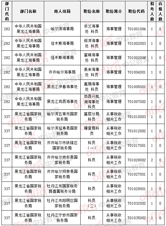 [截至20日16時]2015國考報名【黑龍江】零審核職位匯總