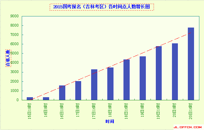 2015吉林國考報名各時間點人數增長情況
