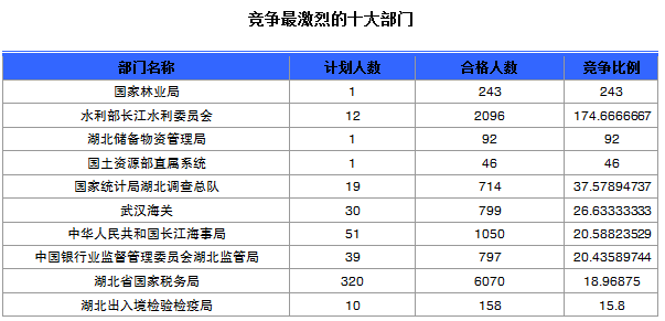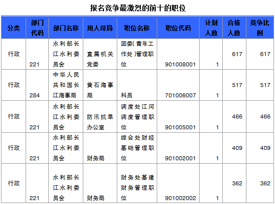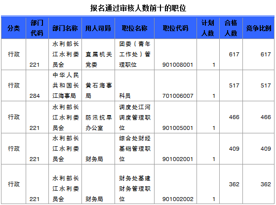 截至21日16時,招錄比例的職位為水利部長江水利委員會直屬機關黨委團委(青年工作處)管理職位一職,招錄1人,通過人數為617人,再創湖北省招錄比例新高!