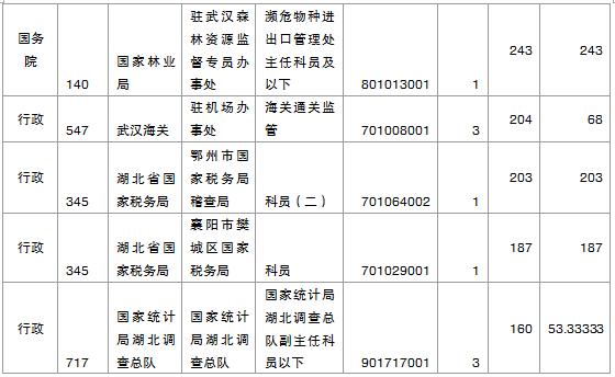 報名通過審核人數前十的職位主要集中在水利部長江水利委員會、中華人民共和國長江海事局、湖北省國家稅務局等部門,具體信息如下: