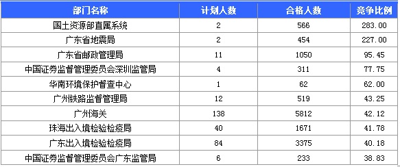 10月21日16時,2015國家公務員考試報名進入第7天。據中公教育統計,國考職位中工作地點在廣東的職位通過審核總人數為57427人,共有29個職位無人通過審核,平均競爭比例為27.52??忌枳⒁膺@并不是最終的報名人數,審核時間是截至2014年10月26日18:00。