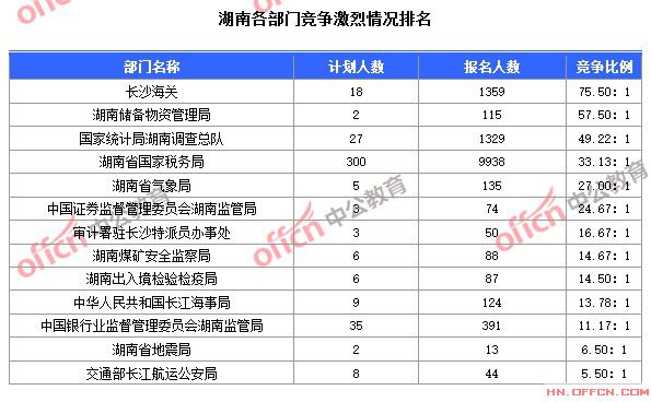 截至22日8時,競爭最熱部門為“長沙海關”,競爭比例為75.5:1。