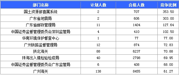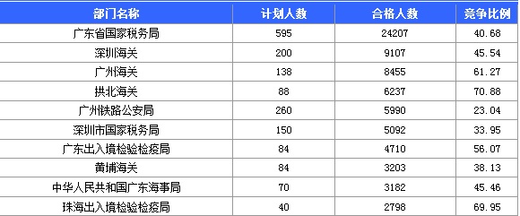 10月23日8時,2015國家公務員考試報名進入第9天。據中公網校統計,國考職位中工作地點在廣東的職位通過審核總人數為87219人,共有9個職位無人通過審核,平均競爭比例為41.79。考生需注意這并不是最終的報名人數,審核時間是截至2014年10月26日18:00。