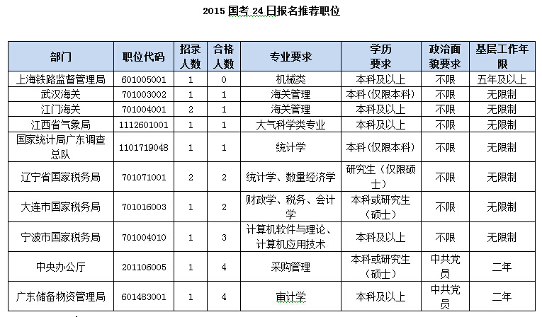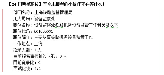 2015國考報名24日明星職位推薦:上海鐵路監督管理局主任科員及以下