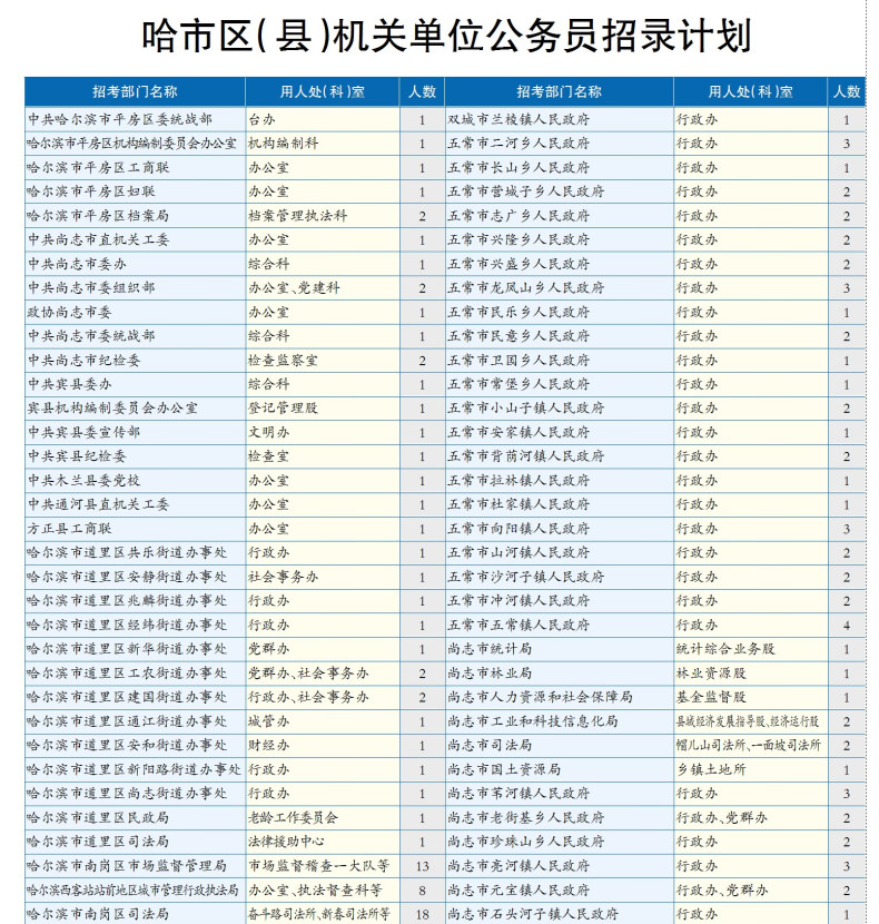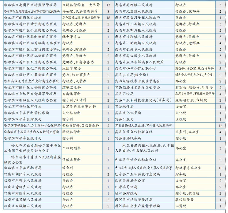原標題:全省縣(區)、鄉(鎮)機關單位招錄1127名公務員哈市233個職位招259人
