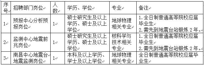 2016江西地震局事業單位招聘公告【招3人】