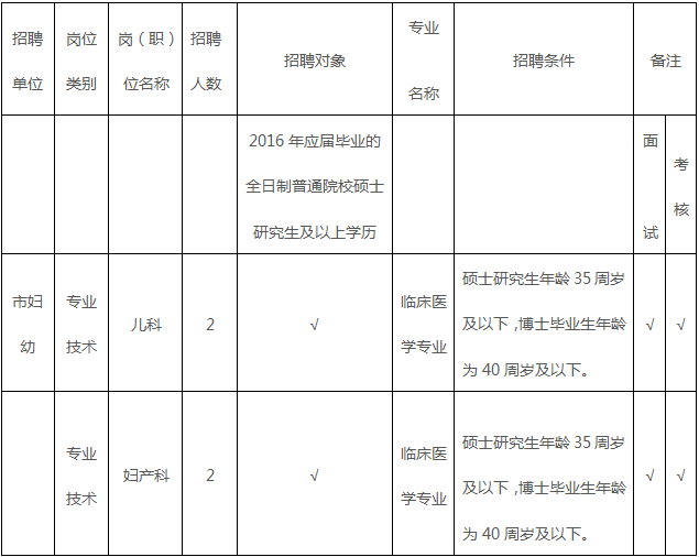 招聘工作人員4名。崗位條件詳情見《2016年度襄陽市婦幼保健院赴高校招聘緊缺專業人才崗位一覽表》(附后)。