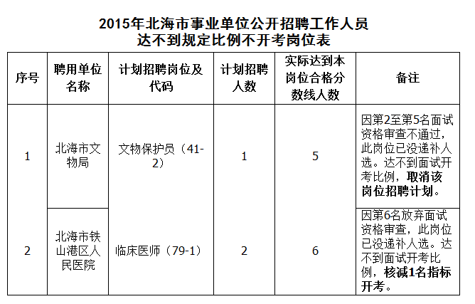 原標題:2015年北海市事業單位公開招聘工作人員面試資格審查不通過取消和核減聘用指標公告