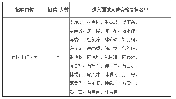 2016福建濱海街道辦事處社區人員招聘面試資格復審公告