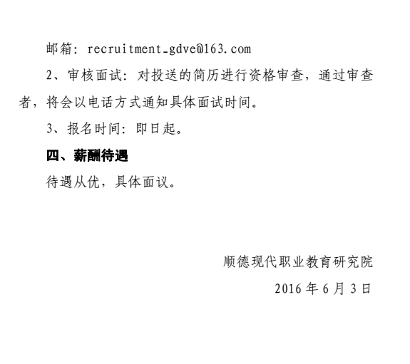2016廣東順德現代職業教育研究院招聘公告【2人】
