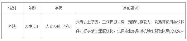 招聘法制輔助人員1人,負責我局法制檔案管理、執法數據報送、聽證記錄工作,協助辦理行政復議、訴訟等工作。
