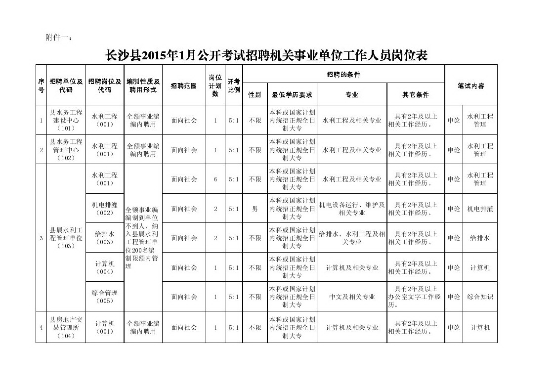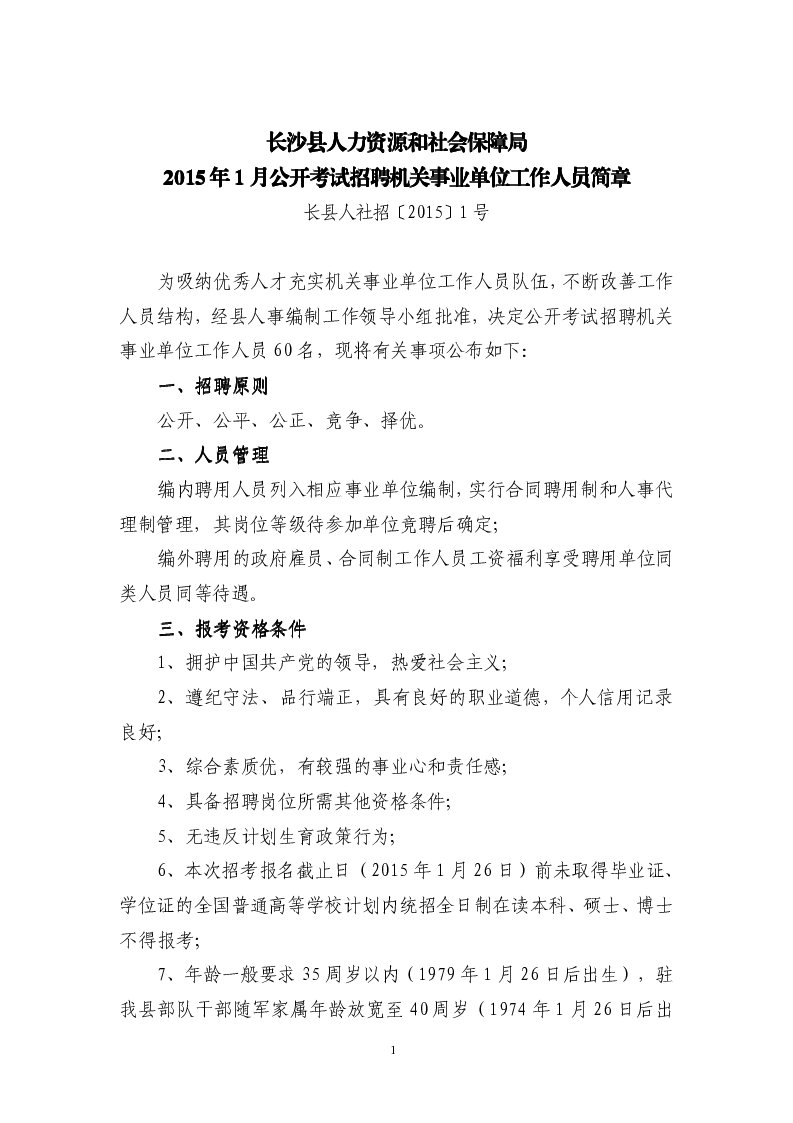 2015年湖南省長沙公開考試招聘機關事業單位工作人員公告