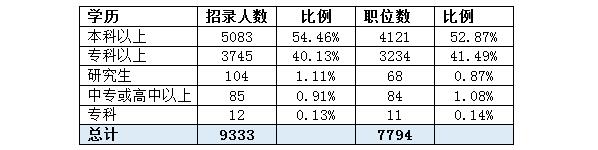 學歷是考生參加公務員考試的重要條件之一,各類崗位對學歷要求也不盡相同,從本次考試招錄計劃來看,基本上涵蓋了各個學歷層次,高中、中專生也有資格參加考試,要求高中、中專為起點學歷的職位有84個、共85人,在所有學歷中,本科為起點學歷的職位有4121個,占到總職位數的52.87%,本科考生的選擇面很大,因此更要慎重。